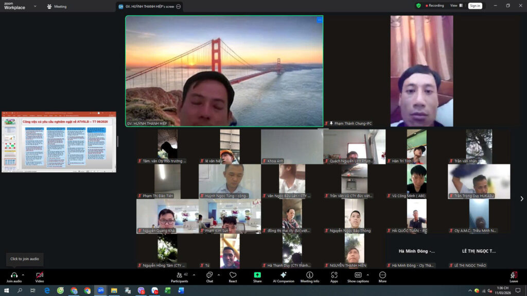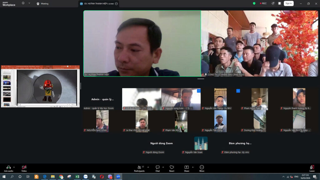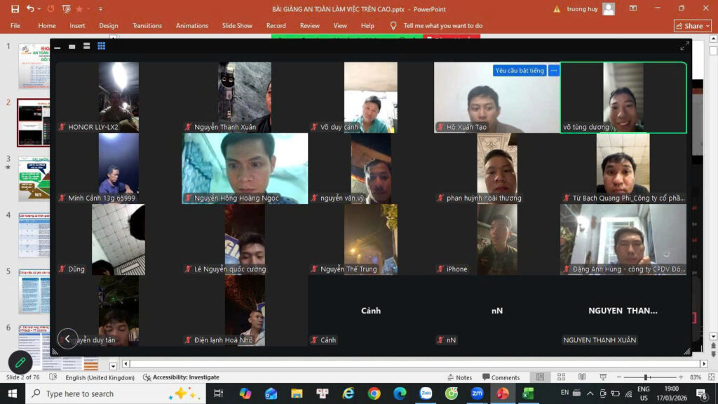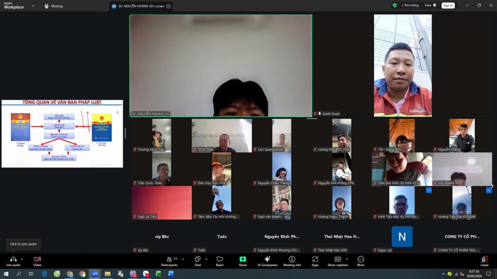 📸 Hình ảnh lớp học online đính kèm thể hiện rõ không khí học tập nghiêm túc, tương tác trực tiếp giữa giảng viên và học viên thông qua nền tảng trực tuyến. Dù không học tại công trường, học viên vẫn được hướng dẫn chi tiết, trao đổi tình huống và cập nhật đầy đủ kiến thức theo quy định hiện hành.