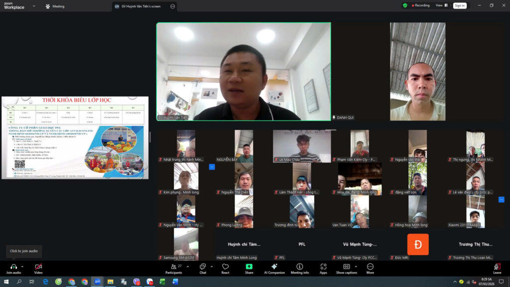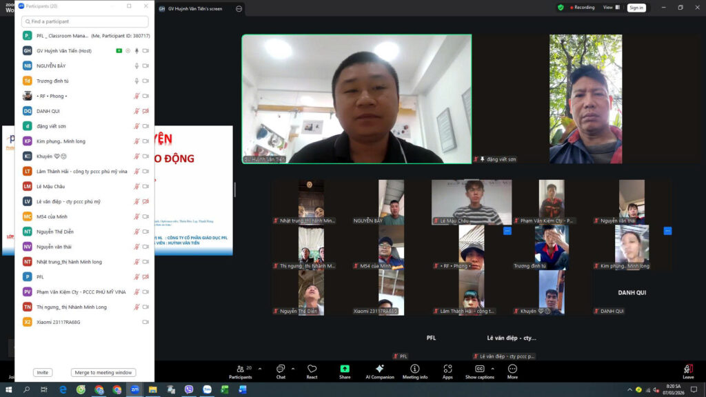 Song song với các buổi huấn luyện trực tiếp tại công trình, CÔNG TY CỔ PHẦN GIÁO DỤC PFL luôn duy trì và phát triển các lớp An toàn lao động – Vệ sinh lao động (ATLĐ – VSLĐ) ONLINE nhằm mang đến giải pháp đào tạo linh hoạt, hiệu quả cho doanh nghiệp và người lao động trong mọi điều kiện.